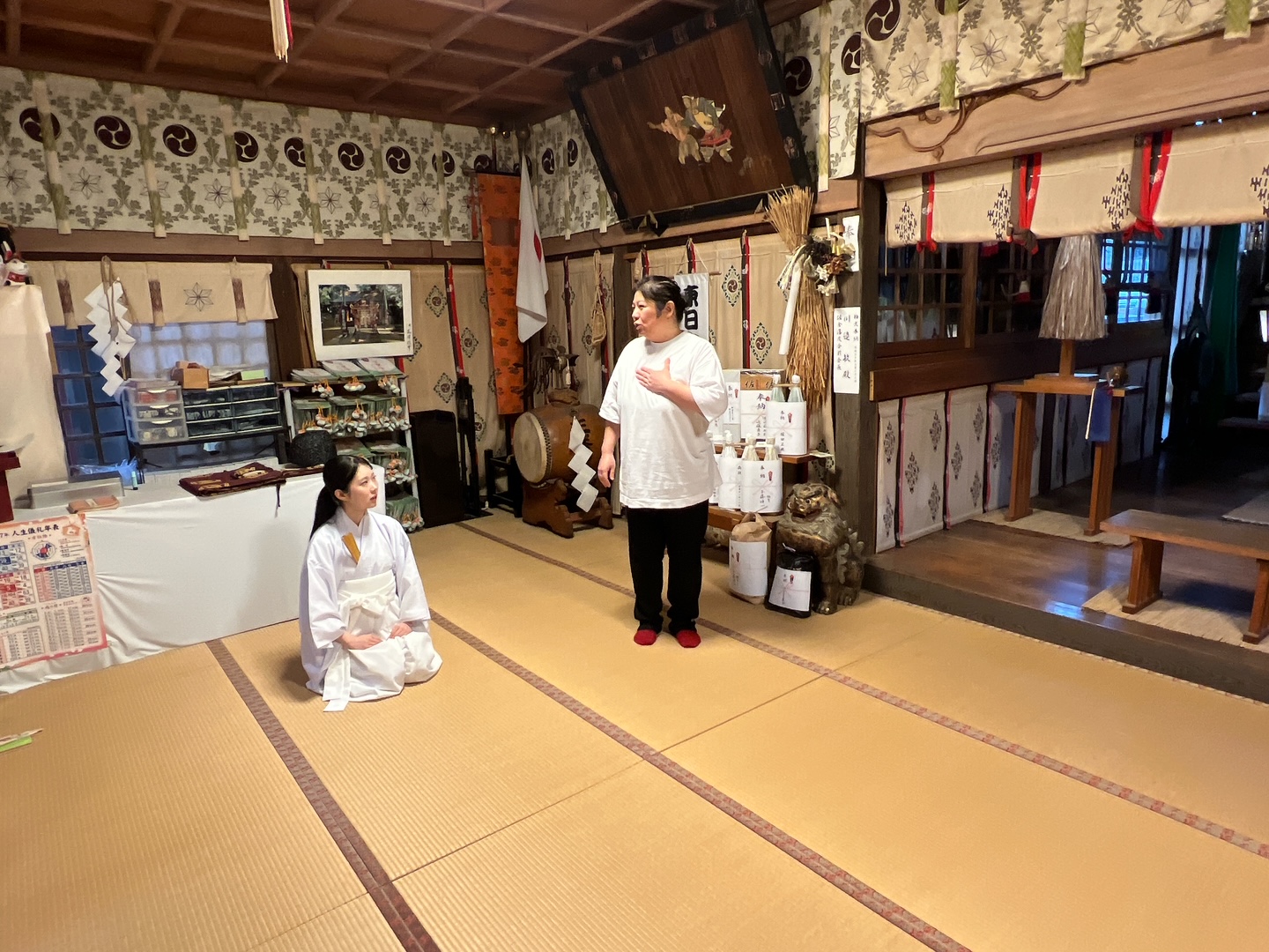 冷たい北西の強風は止みましたが、最低気温は昨日より2度低い-2度の佐倉です。 と言うことは、昨日の最低気温は0度。そんなに寒かったんだと思いつつ、スマートフォンで気温の変化を見たところ、日の出前が一番低いのが解ります。 太陽の光が熱を吸収して気温が下がると何かの本で読んだ記憶がありますが、実際に元日などは初日の出の当たりに祭典奉仕をした事も有りまして、まあ寒いのなんの。 それが屋外ときたものですから、袴の下にスパッツを履いていても、突き刺さるような冷気が大事なところを攻撃するのです・笑 「日の出の時間に祭典奉仕をした」という過去形になっているのには理由が有りまして、兼務である大佐倉麻賀多神社の歳旦祭は、以前は午前6時で行なっていましたが、現在は7時半に時間変更となりました。 この1時間半ってとっても大きく、大晦日からの二年参りが一段落する午前2時半頃に一度社頭を閉めて、そこから少し仮眠が取れるのです。 そして起床後に改服をして、大佐倉に出向する時間帯は日の出の後なので寒さのピークは過ぎており、総代さん方も今の時間が良いともっぱらの評判・笑 その元日まで日一日と迫ってきておりますが、今日も通常社務の合間に出来る範囲で迎春準備を行ないました。 今日の社務は宮司・禰宜画伯・出仕と巫女の4人体制。このうちの3人が女性なので、当社は女性活躍推進神社かもしれません・笑 見慣れない文言が入っていると気付かれた方、流石です。出仕(しゅっし)なるここ数年の七峯では登場しなかった単語なんですね。 出仕とは神職の見習いという意味合いでして、神職資格を取得してもいきなり権禰宜以上にはなれませんで、千葉県神社庁管内の神社では基本1年出仕期間を過ぎて、宮司の判断により権禰宜登用となります。 神社によっては2〜3年の出仕期間を設けているところもあり、その間に神職としての基礎を確立するのです。 今回出仕として麻賀多神社に入りましたのが佐藤さん。今夏に開催された國學院大學神職養成講習会で神職資格「直階・ちょっかい」を取得しました。 神職資格を取得すれば神職というわけではなく、上記のように先ずは出仕として神社に奉職し、それから神社本庁統理宛てに宮司から権禰宜以上の具申をして、統理名の任命証が発給される事により晴れて神職となるのです。 神職養成講習会は短期間のうちに神職の基礎を学ぶので、その後に確りと神明奉仕をしないと学んだことが泡のように消えてしまいます。 なので神前での作法、これを祭式と呼びますが、なるべく祈祷へも副斎主として奉仕をさせて良い意味で慣れさせていきます。 最初はガチガチな作法であっても、神前奉仕を重ねるにつれて、流れるような作法に成長します。 初心を忘れず、それでいて神様にも参拝者にも心安らかになって頂ける祭式を学ばせたいと思います。 実は彼女、八千代市村上に鎮座する七百余所神社宮司の息女。なので週末はそちらで奉仕をして、平日のみの麻賀多神社に出社となります。 若葉マークの神職です。皆さん方には温かく見守って頂きますよう、宜しくお願い致します。 |