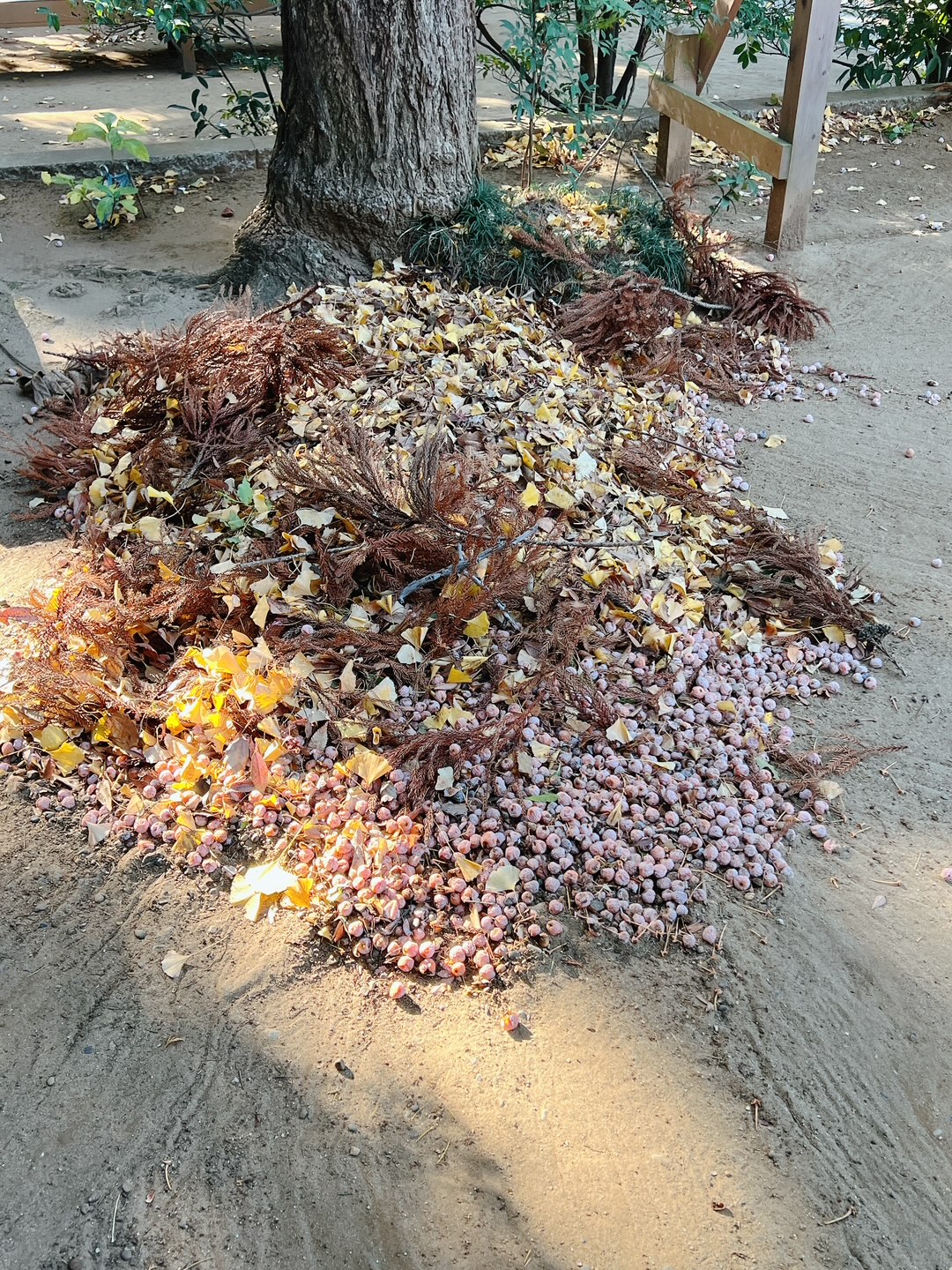 吹き荒む北西の冷たい強風もどうにか収った佐倉ですが、気温というと最高が9度で昨日比−2度。最低が−2度で昨日比で−2度と寒いのは変わりませんが、風が無いだけ体感気温が全く違いますね。 続いた強風で、今シーズンはもう落ちきっていただろうという銀杏の実がまた結構な量で落ちまして、すっかり葉の落ちた境内の木々を見るに、「まだ銀杏が有るんじゃないか」と疑心暗鬼になる宮司であります。 境内の木々、秋から冬にかけては先述の銀杏と欅がツートップで落葉をしますが、ダークホースがおりまして、それが杉なんです。 杉の張りのような葉って、いつも緑色をしているイメージがありますが、葉なのでいつかは落葉をするのは当たり前で、ハラハラというわけではなく、葉が着いている枝ごと落ちてくるので、強風の後には結構な量の杉の葉が山となります。 これって、軽いので集めるには良いのですが、佐倉市指定の可燃ゴミ袋に詰めるとなると、針葉樹の葉なのでよっぽど気を付けないと、すぐに袋が裂けてしまうんですよね。 今日も30リットルの可燃袋に5つほど集めましたが、杉の葉が入っているのはいように軽く、銀杏の実入りは異常に重いので、可燃指定日の月曜日に出す際にはぎっくり腰にならないように気を付けます。 今日で境内掃除が終わったわけではなく、この先は屋根職人さんにお願いをして、御殿と社務所の屋根掃除でまた落ち葉が出るので、最終的には20日あたりを目安に完了したいと思います。 強風の影響はまだ有りまして、境内に設置しているサイクルラック2機が、なんと風に煽られて幾度も倒れてしまったのです。 その影響かもしれませんが、1機の脚がはずれてしまい、電動ドライバーで修理をする事に。 どうせやるならと、全部のビスを確認して締め直し作業もしたので、暫くは大丈夫だと思います。 ※書きかけ |