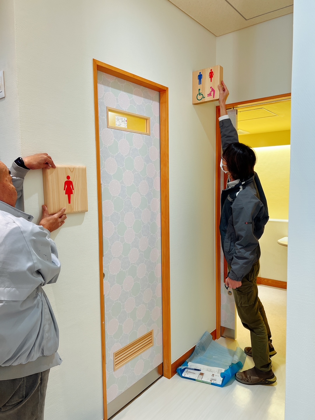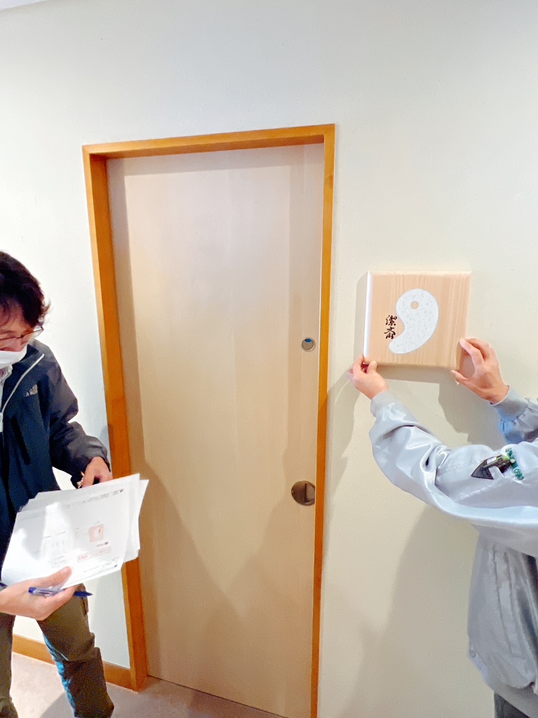 本日は大安の土曜日、そして一粒万倍日ということで、多くのお参りとご祈祷が有りまして、祈祷番の智勇権禰宜がフル稼働した一日となりました。 昨日までの予報では今夜半から雨とあったのですが、実際にはかなり早まり午前10時には小雨が降り始め、降ったり止んだりを繰り返す一日となりました。 その分なのか、明日の日中は晴れ間となるようで、御祈祷と外祭がありますので、少しく安堵をしております。 今日の宮司ですが、一日を通して作業服に神社の袢纏という、一見すると大工の棟梁的な格好でして、境内の大型テント臨時授与所の設営をしつつ、初宮詣や七五三詣の御祈祷を受けた方の撮影手伝いも。 まさか宮司とは思われないところがまた良い感じでして、撮影後に「作業頑張って下さい」と暖かい労いの言の葉を頂き、より一層作業に身が入る宮司でございました。 そんな合間にも、現社務所から新社務所へ荷物の搬入をしたり、板金屋さんと話したりとあっという間に夕方となりました。 明日に仮竣工の引き渡しを控え、新社務所内での作業も重なり、今自分は何をメインで動いているのか、目まぐるしく移り変わりましたが、予定をしていた仕事以上に捗ったかな。 新社務所内を行き来して、目に入ってきたのが1階トイレエリアの黄色い壁。実際には黄色に少し灰色を混ぜたような感じで、明るさの中に落ち着きも有る色となっております。 1階トイレエリアは女性用と多目的の、2つのトイレがありまして、男性用はありませんので、境内東側にある既存のトイレをご使用下さい。 宮司が新社務所を建設するに当たって、幾つかの「これだけは作りたい」と、念願したものがあるんです。 その2つが多目的トイレと、そこに設置したおむつ交換台。赤ちゃんからご老人、そして健常者から障害者まで使える場所を作りたかったのです。 今回作った多目的トイレはオストメイトは設置しておりませんが、車椅子で入ることが出来る広さとなっております。 麻賀多神社の神様「稚産霊命・わかむすびのみこと」様は、多くの御神徳が有る中でも健児育成、安産子育ての神として広く崇敬を集めてまいりました。 少子化が叫ばれて久しいですが、今日も多くのお子さんがご家族と一緒にお参り。雨降りの中にも暖かい光景が繰り広げられた麻賀多様です。 今までは待合室もなく、おむつを替えるといったら境内の縁台の上などで、心苦しい思いをしておりました。 これからは安心しておむつ替えが出来るようになりますし、お声掛けを頂ければ授乳が出来る場所へご案内も可能です。 もっと早くに出来ていればとの思いが心の中に残っておりますが、中途半端なものではかえって不安定さを増すばかりですので、逸る気持ちを我慢した分、良いものが出来上がったと思います。 引き渡しは明日ですが、実際に使用開始となるのは元日からとなる予定。おむつ交換台を使う赤ちゃん第一号はだれかな!? 引き渡し後は今一度掃除と点検、そしてトイレットペーパーやエチケットボックスなどの備品も装備しませんとね。