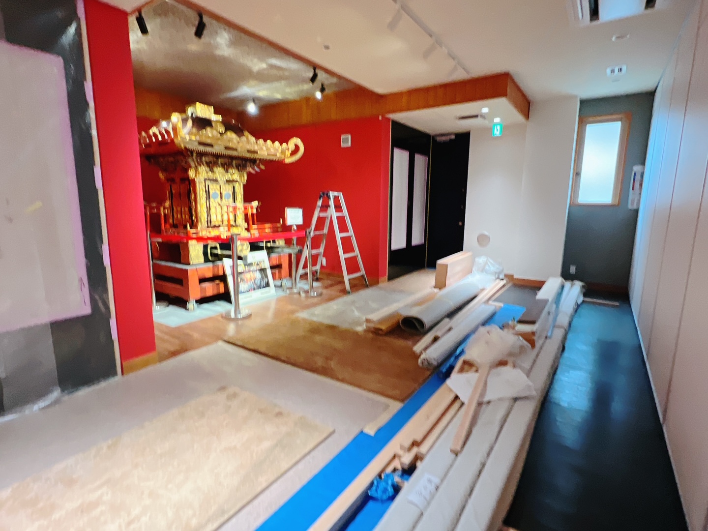衆議院解散の前に新党が出来たり、そこに入る入らないとか、推薦をするだのしないのだとか、余所の野党では除名処分がうんたらとか、まあ勝手にやっててよといった感じですが、今日も寒いですね。 政界の寒さに比例しなくてもいいのに、今回の寒波はだいぶ居座りそうですので、特に雪国の皆さんにはご注意を頂きたく思います。 当社で新年の安全祈願祭を奉仕する会社に、本社が新潟県長岡市の所がありまして、数年に一度そちらへも出張祭典で伺うのですが、多分極寒の中に仕事をされていると思われます。 本州でも南国に分類される千葉県でも、今日の最低気温は−2度で、明日は−6度。水道管の凍結が怖いですね。 さて、新社務所も部分使用開始となりはや1ヶ月。表向きはほぼ完成をしておりますが、文化財収蔵庫を完成させる二期工事が始まりました。 場所としては祈祷待合室の奥。初詣にて新社務所内に入られた方は目にされたと思いますが、大神輿が安置されている場所になります。 大神輿の両脇には当社所蔵の2領の甲冑が展示されることになっており、構造体である鉄筋コンクリートの乾燥を待って内装工事を行なう事になっておりました。 展示される甲冑は佐倉藩主の堀田家と筆頭家老の佐治家より、明治時代に当社へ奉納された 貴重な物で、前者は千葉県、後者は佐倉市それぞれに指定文化財となっております。 今までは旧神輿倉内に保管。佐倉市の記念行事や博物館への展示以外に、皆さんの目に直接触れることはありませんでした。 新社務所を建設するに当たって、佐倉城と武家屋敷、そして城下町との真ん中に鎮座する麻賀多神社が、人の集いの中心としてどのように役立てるのかを考えました。 その中の一つが、当社所蔵の文化財を広く皆さんに公開することによって、佐倉としての歴史博物館が無い当地で佐倉の歴史を感じて貰える場所づくりでした。 二期工事は3月中旬に完了予定で、そこから行政の検査と修理に出している堀田家奉納の紫裾濃胴丸の帰還と展示作業に入ります。 なので祈祷待合室前から見えた大神輿が、暫くはパーティションで隠れることになりまして、その間についてはご容赦の程を願います。 また千本鳥居付近も工事の都合上、一時期通行止めとなりますので、こちらも重ねてお見知りおき下さい。