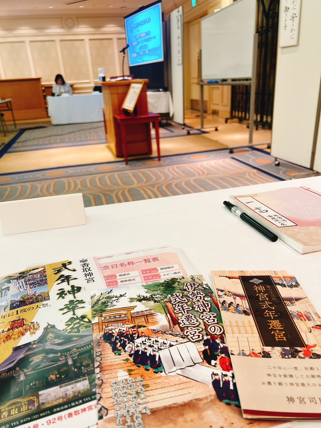 只今午後4時。新社務所の事務室で七峯を打ちながら、境内に響く風雨と報鼓の音を聞く宮司であります。 当社の祈祷は午後3時半の回が最終でして、この時間に拝殿から報鼓の音が聞こえるのは珍しいんですよ。 何故に聞こえるかと言うことなんですが、佐藤出仕が智勇権禰宜に祈祷の作法と順序を享受して貰ってる所でして、言わばお稽古中なわけです。 報鼓とは御祈祷の前に叩く太鼓のこと。これからお式が始まりますよと報せる為に打つんです。 神社によっても叩き方に違いがあって、それを拾得するのも大切なお稽古。音を聞くだけではなく実際に打つのも大事なんですよ。 さて、今日の宮司はいつもより2時間半早く起床しまして、ユーカリが丘にあるウイシュトンホテルに出向してまいりました。 余り早起きが苦手な宮司。苦手というかいつものペースと違うのが得意ではありませんで・苦笑 一応ですが会員となっている佐倉市倫理法人会のモーニングセミナーに講師として、年に1回の役目を果たしてまいりました。 演題は「式年祭〜神宮式年遷宮を中心として〜」で、持ち時間は40分と、とてもとても話しきれない内容なんですよね。 当然の如く式年遷宮の全部を話すのではなく、主題となる「式年祭とは」の一例として取り上げました。 式年祭とは「年をめぐって行なう祭典」の意味。10年や20年と切りの良い数字が多いですが、昨日取り上げた香取神宮のように12年毎の祭典もあり、その数字についても説明を致しました。 上記のように、式年というと祭典のイメージが強いですが、人生儀礼である結婚。その「何年目」というのも式年の要素があるんですよ。 一般的には結婚25年の銀婚式や50年の金婚式が有名ですが、結婚1年の紙婚式から始まりまして、2年は綿婚、3年は皮婚と段々豪華になっていくらしいです。 因みに長寿社会となりまして金婚式は珍しくなくなり、その上には55年でエメラルド婚。 さらに60年でダイヤモンド婚、65年でブルーサファイア婚で70年ではプラチナ婚となるそうです。 今年30年の真珠婚式を迎えた宮司ですが、あと40年後には93歳なので、神明奉仕に勤しんでいればいけるんではないかと、倫理法人会員の方々に話をしながら頭に思い浮かびました。 花散らしの風雨は未だ収りませんが、神社前にある染井吉野は満開ちょっと前なので頑張っております。 今週末まで、出来れば来週に多いであろう入学式まで、綺麗な桜花にはもって欲しいですね。 |